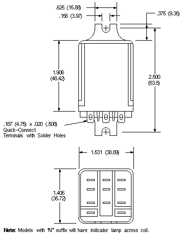 • .187" 3-way terminals suitable for plug-in, solder, and Quick connect