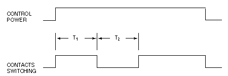 RECYCLE TIMING - The first delay period begins when the input voltage is applied. At the end of the first delay, or "ON" period, the internal relay pulls in, and the second delay, or "OFF" period begins. When the second delay period ends, the relay drops out. This recycling sequence will continue until the removal of input voltage. When input voltage is removed, the relay drops out
