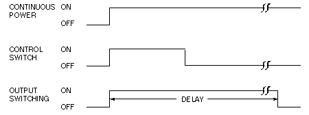 SINGLE SHOT - Upon closure of the control switch, output switch operates and time period begins. The time period is not affected by duration of the control switch closure. At the end of the time period, the output switch returns to normal. Continuous power must be furnished to this timer.